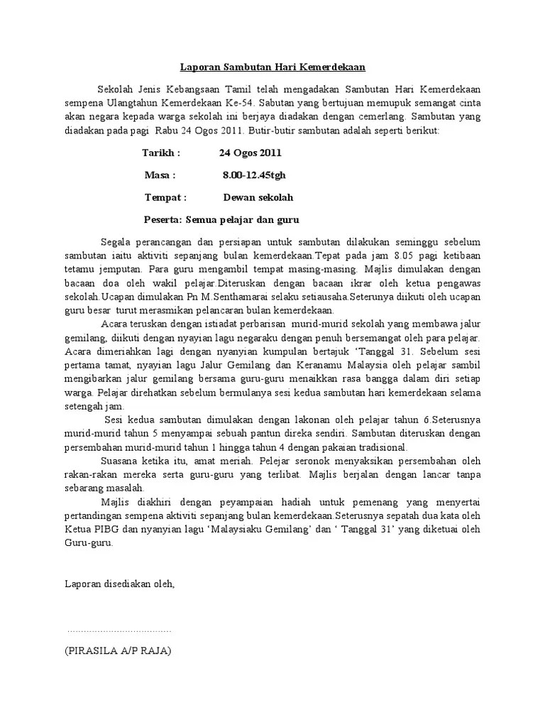 Kami berharap agar blog ini nanti boleh menjadi . Karangan laporan upsr (sambutan hari kemerdekaan). Karangan catatan sambutan hari guru di sekolah soalan: Tulis ucapan kamu itu selengkapnya.